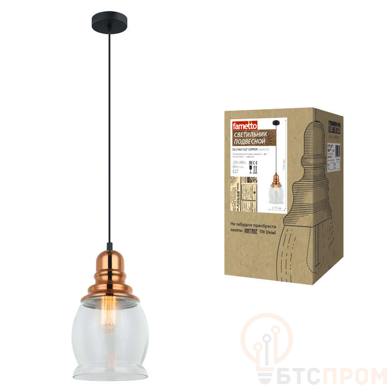Светильник декоративный подвесной DLC-V401 E27 COPPER Uniel UL-00000977 фото в каталоге от BTSprom.by
