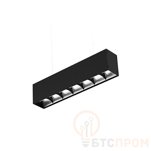 Подвесные светодиодные линейные светильники с повышенной защитой от блескости, показатель дискомфорта UGR<19. Для создания комфортной световой среды светильники оснащаются специальной оптической системой, состоящей из защитной решетки, отражателя выполненного из аланода и опалового рассеивателя полукруглой формы. Светильники опционально могут оснащаться управляемыми (диммируемыми) источниками питания. Удобный крепеж позволяет осуществлять подвесной монтаж светильников с бесступенчатой регулировкой высоты. Цвет корпуса может быть выбран заказчиком по шкале RAL. Цвет корпуса черный матовый. Материал корпуса: алюминий. Материал рассеивателя: опаловый ПММА. Материал отражателя: аланод.