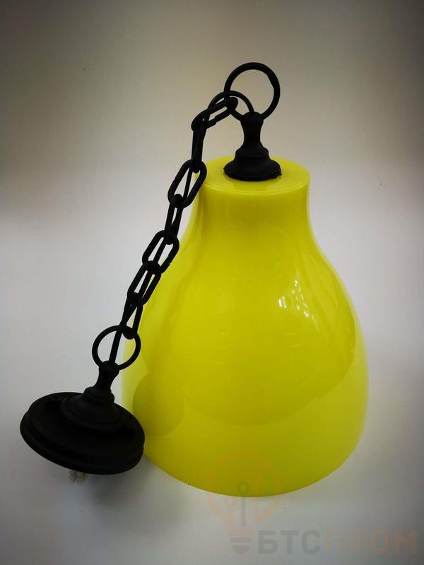 Корпус светильника выполнен в классическом желтом цвете с черной цепочкой для подвеса, что гарантирует удобство монтажа и настройки направления светового потока. Мощность прибора составляет 60 Вт, что позволяет создать комфортное и равномерное освещение значительных площадей.