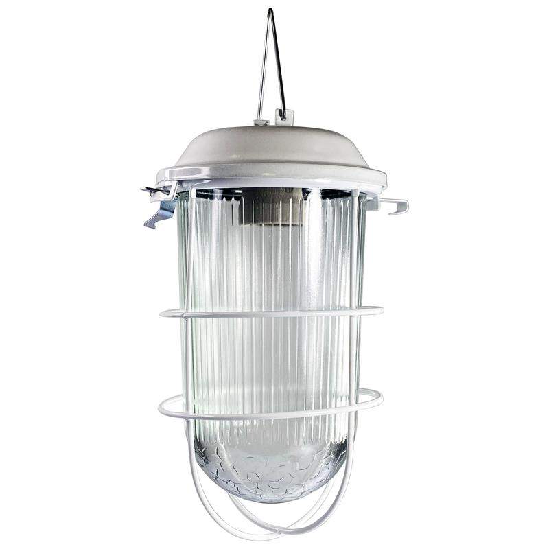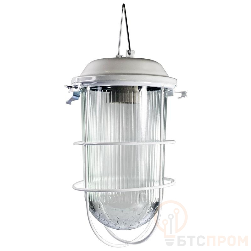 Подвесной светильник для общего освещения промышленных и вспомогательных технических помещений с повышенной запыленностью. Корпус из стали покрыт порошковой краской. Рассеиватель из стекла надежно соединен с корпусом и обеспечивает пылевлагозащиту IP52, защищен от случайных внешний воздействий металлической решеткой. Установлен керамический патрон Е27. Производитель рекомендует использовать лампу накаливания с цоколем E27, мощностью до 200 вт, а также светодиодные или энергосберегающие лампы.