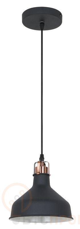 Светильники стационарные подвесные для использования с лампами накаливания предназначены для подсветки интерьеров квартир, загородных коттеджей, кафе и ресторанов. Camelion PL-425S Amsterdam С62 черный+медь, размер 1215х190х1215мм, источник света - ЛОН, тип лампы - 60/A/E27, патрон - E27, мощность 60Вт, ~230 В, 50 Гц. Фактурная бархатистая окраска