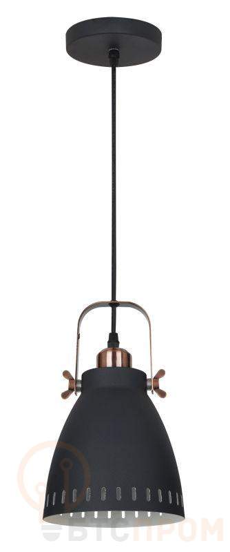 Светильники стационарные подвесные для использования с лампами накаливания предназначены для подсветки интерьеров квартир, загородных коттеджей, кафе и ресторанов. Camelion PL-428S-1 New York С62 черный+медь, размер 1789х165х165мм, источник света - ЛОН, тип лампы - 40/A/E27, патрон - E27, мощность 40Вт, ~230 В, 50 Гц. Фактурная бархатистая окраска