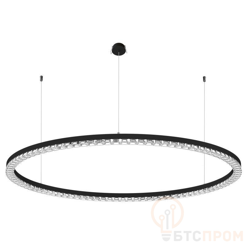 Подвесной светильник. Мощность 80 Вт, св. поток 6370 лм, 80-95лм/Вт, теплый 3000 K, CRI>90, угол 45°, напряжение питания 230 В. Черный круглый корпус из алюминия, экран PMMA, степень защиты IP20. Размер: диаметр 1250 мм, высота 34 мм, ширина профиля 30 мм, размер чаши: диаметр 65 мм, высота 26 мм. Монтаж подвесной, длина подвеса 1200 мм, тип чаши встраиваемый, диаметр установочного отверстия чаши 60 мм. Драйвер (2 шт) 9-38 В, 1050 мА. Пульсация <0,3 %.