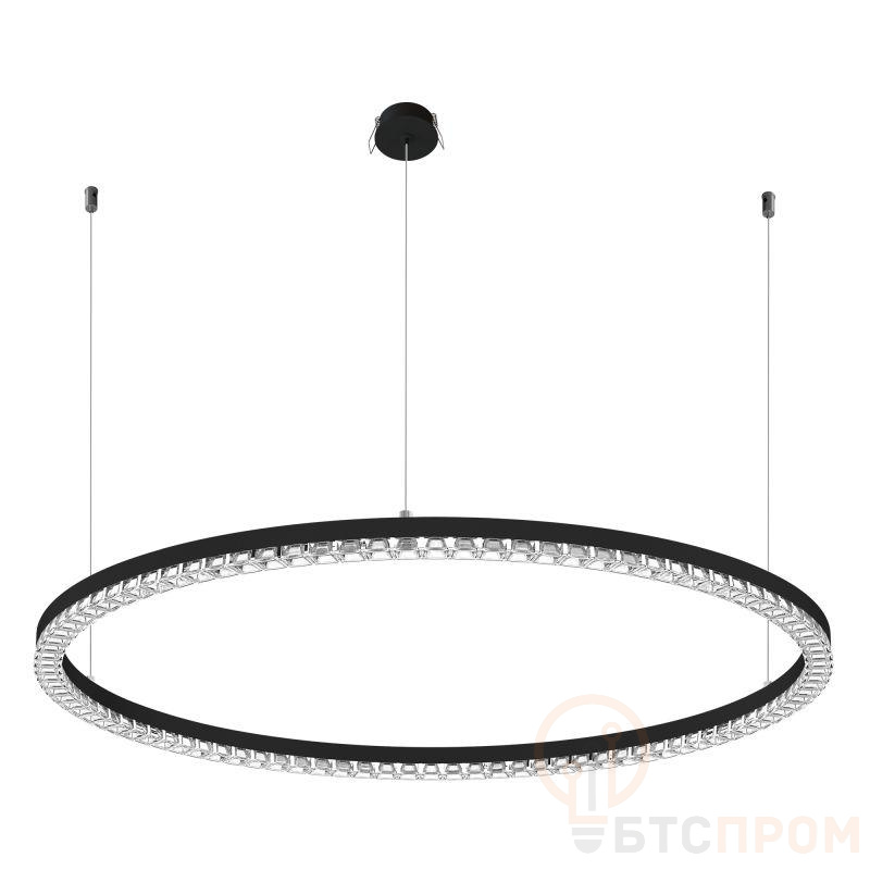 Подвесной светильник. Мощность 40 Вт, св. поток 3340 лм, 80-95лм/Вт, теплый 3000 K, CRI>90, угол 45°, напряжение питания 230 В. Черный круглый корпус из алюминия, экран PMMA, степень защиты IP20. Размер: диаметр 850 мм, высота 34мм, ширина профиля 30 мм, размер чаши: диаметр 65 мм, высота 26 мм. Монтаж подвесной, длина подвеса 1200 мм, тип чаши встраиваемый, диаметр установочного отверстия чаши 60 мм. Драйвер 27-38 В, 1050 мА. Пульсация <0,3 %.