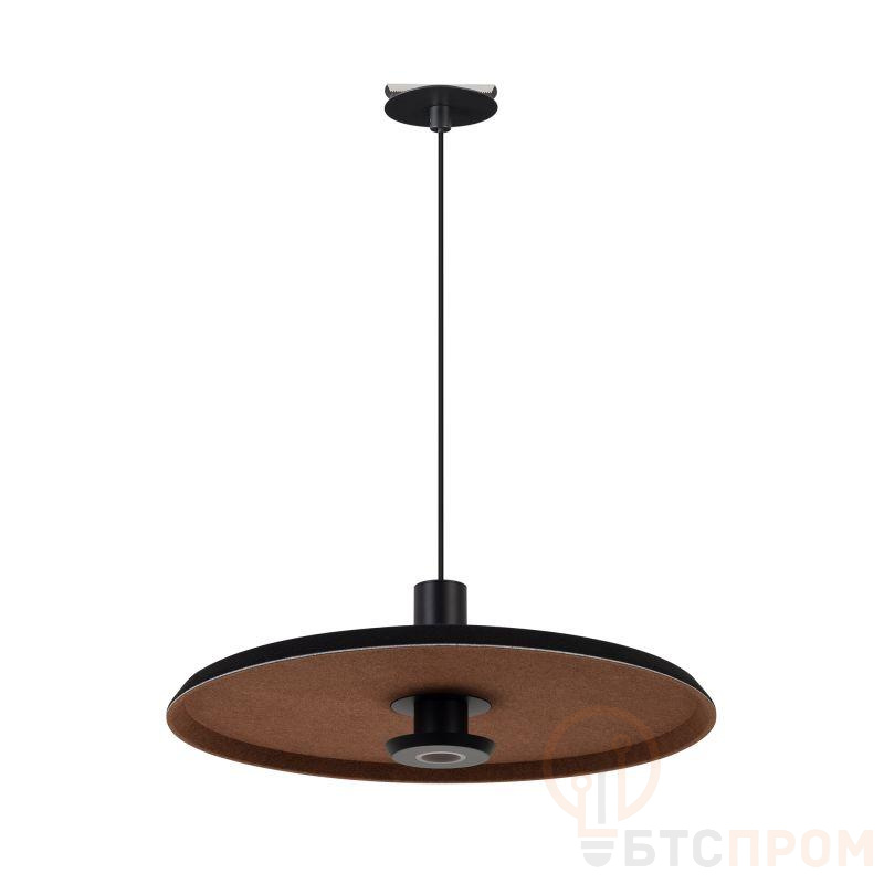 Подвесной светильник. Мощность 12 Вт, св. поток 648 лм, 64 лм/Вт, теплый 2700 K, CRI>94, угол 36°, напряжение питания 230 В. Черный фигурный плафон из переработанного фетра с кофейной внутренней поверхностью, линза-рассеиватель из PMMA, степень защиты IP20. Размер: диаметр 450 мм, высота 145 мм. Монтаж подвесной, длина подвеса 2000 мм, регулируемая. В комплекте 2 вида чаш. Габариты чаши (встраиваемая) O80 х 23 мм, врезное отверстие O60 мм. Габариты чаши (накладная) O120 x 35 мм. Драйвер 59В, 300 мА, пульсация <1%. Управление по TRIAC.