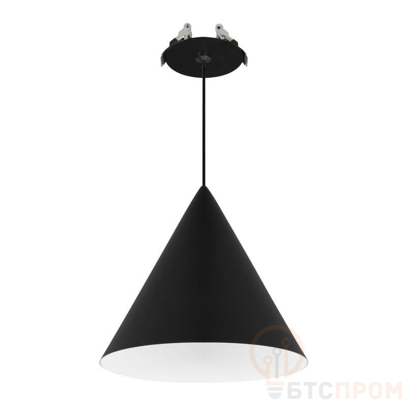 Подвесной светильник. Мощность 10 Вт, св. поток 550 лм, 55 лм/Вт, теплый 2700 K, CRI>94, угол 36°, напряжение питания 230 В. Черный корпус из алюминия в форме конуса с белой внутренней поверхностью, линза-рассеиватель из PMMA, степень защиты IP20. Размер: диаметр 180 мм, высота 175 мм. Монтаж подвесной, длина подвеса 2000 мм, регулируемая. В комплекте две чаши. Габариты чаши (встроенной) O80 х 41 мм, врезное отверстие O55 мм, габариты чаши (накладной) O110 х 25 мм. Драйвер 2,8-12В, 500 мА, пульсация <1%. Управление по TRIAC.