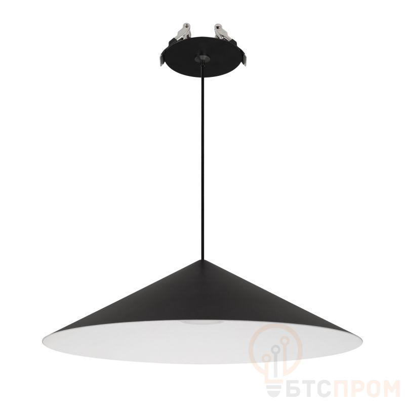 Подвесной светильник. Мощность 10 Вт, св. поток 700 лм, 70лм/Вт, теплый 3000 K, CRI>94, угол 36°, напряжение питания 230 В. Черный корпус из алюминия в форме конуса с белой внутренней поверхностью, линза-рассеиватель из PMMA, степень защиты IP20. Размер: диаметр 300 мм, высота 80 мм. Монтаж подвесной, длина подвеса 2000 мм, регулируемая. В комплекте две чаши. Габариты чаши (встроенной) O80 х 41 мм, врезное отверстие O55 мм, габариты чаши (накладной) O110 х 25 мм. Драйвер 2,8-12В, 500мА, пульсация <1%. Управление по TRIAC.