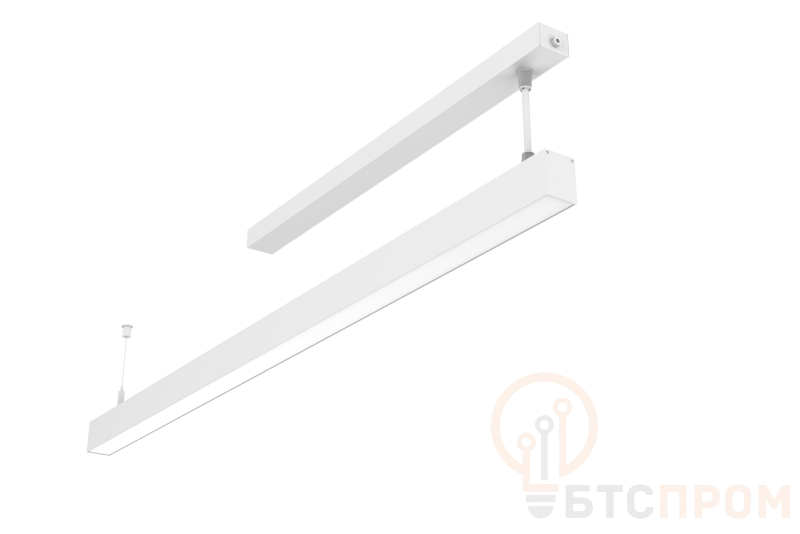 Корпус светильника выполнен в элегантном белом муаровом цвете (RAL9003) и дополнен опаловым рассеивателем, который обеспечивает равномерное и мягкое распределение света без бликов. Светильник поддерживает протокол диммирования DALI, что позволяет интегрировать его в систему интеллектуального управления освещением для создания гибких световых сценариев и экономии энергии. Степень защиты IP40 делает прибор надежным для использования в чистых и сухих внутренних пространствах. Его подвесной монтаж и габариты 761x35x45 мм позволяют эффективно организовать освещение над столами, в коридорах или зонах ожидания.