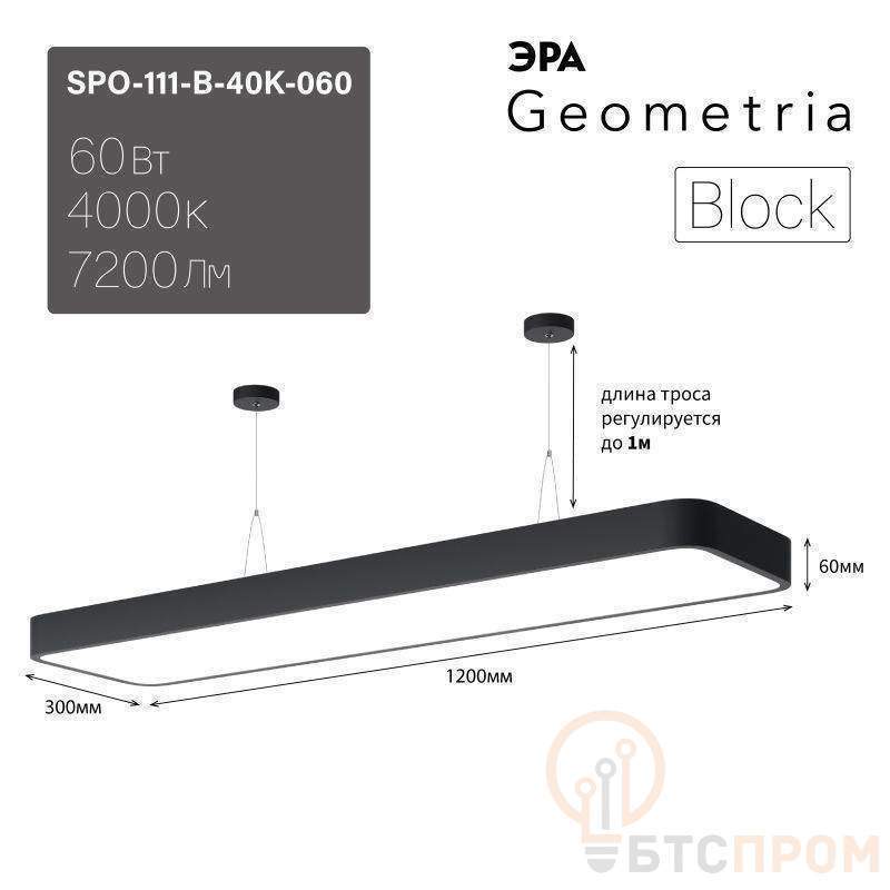 Светильник светодиодный Geometria Block SPO-111-B-40K-060 60Вт 4000К 7200лм IP40 1200х300х60 подвесной черн. Эра Б0050539