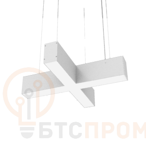 Корпус изделия выполнен из стали с порошковым покрытием RAL 9003 (белый муар), что гарантирует долговечность и устойчивость к внешним воздействиям. Х-образная конструкция с четырьмя торцевыми крышками придает светильнику стильный, технологичный вид. Опаловый рассеиватель создает равномерное, мягкое освещение без слепящего эффекта, идеальное для зон, где важна визуальная комфортность.