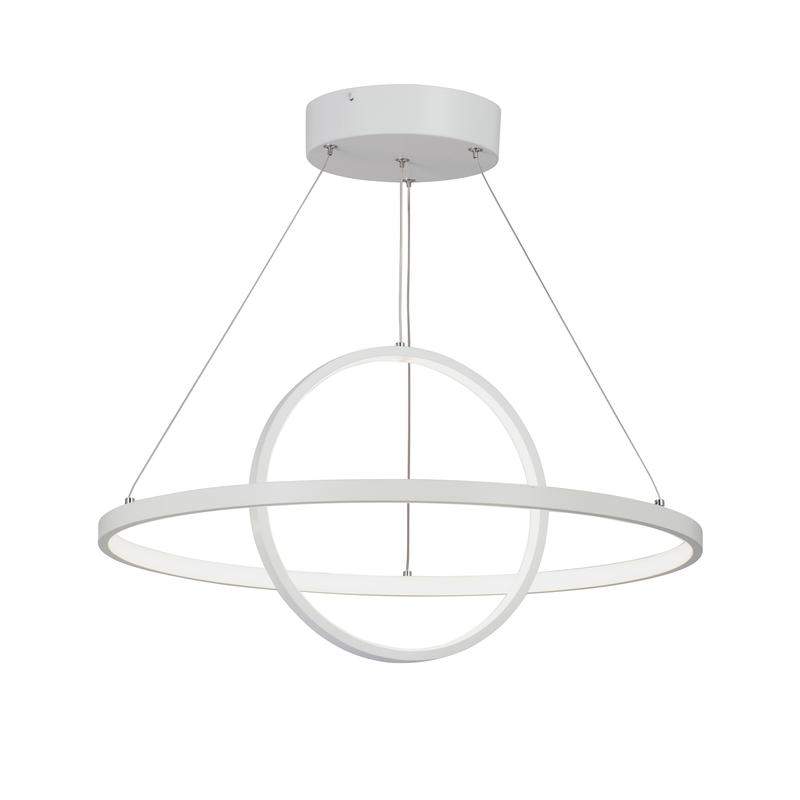 Светодиодный светильник V4676-0/2S в стиле хай-тек, станет прекрасным выбором для освещения вашей детской, столовой, спальни. Цвет арматуры - белый. Площадь освещения составляет 10-14 кв.м. Размеры изделия: высота - 103 см, диаметр - 58 см. Размеры потолочной чаши: высота - 5 см, диаметр - 19 см. Высота регулируется. Тип крепления - планка. Прилагается инструкция по сборке и установке.