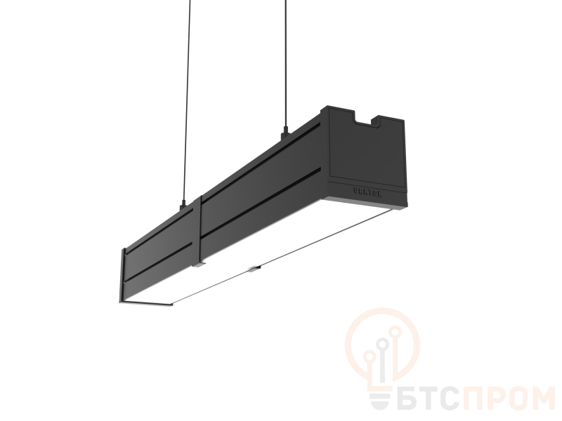 Светильник светодиодный Mercury Pro GL 523х66х68 18Вт 3000К CRI90 подвесной/накладной аварийный автономный постоянного действия рассеив. опал закал. стекло RAL9005 черн. муар декор. провод 2м подвесы 2м VARTON V1-R0-9R256-31GOA-5401830