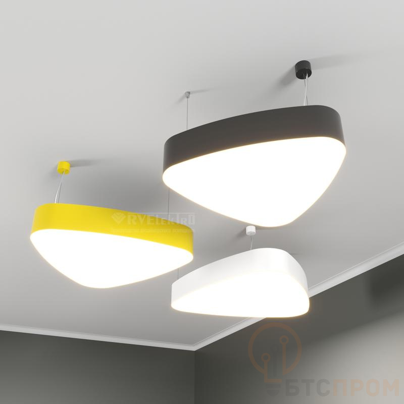 Корпус светильника выполнен в белом цвете, имеет лаконичный дизайн и габаритные размеры 500x475x100 мм, что позволяет ему органично вписаться в любой современный интерьер. Благодаря подвесному способу монтажа, установка прибора проста и надежна.