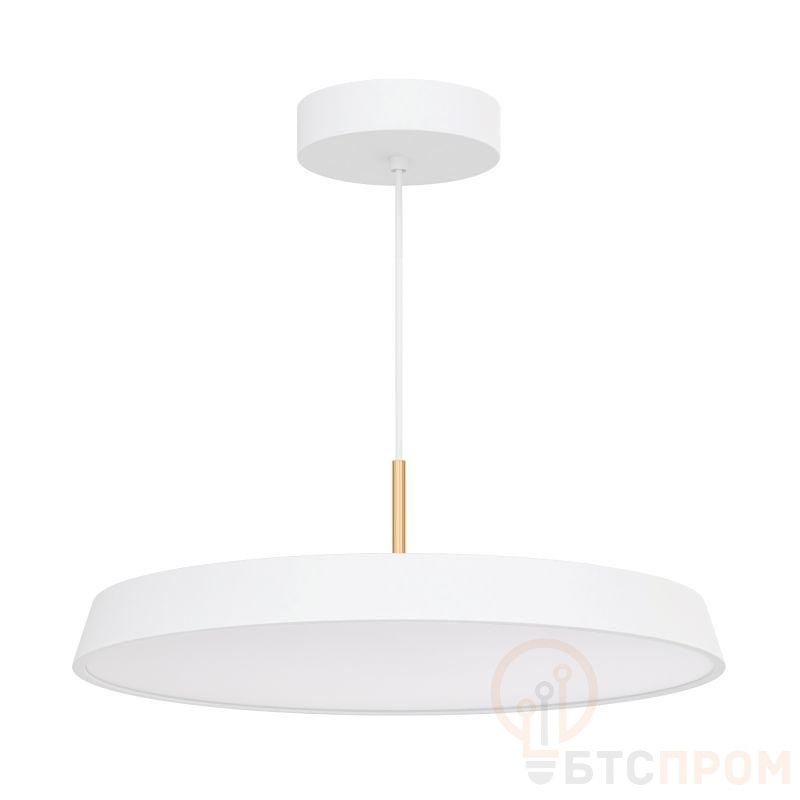 Подвесной светильник. Мощность 37 Вт, св. поток 3071 лм, 83 лм/Вт, дневной 4000 K, CRI>80, угол 120°, напряжение питания 230 В. Белый круглый корпус из стали, экран PMMA, степень защиты IP20. Размер: диаметр 500 мм, высота 50 мм, размер чаши: диаметр 160 мм, высота 35 мм. Монтаж подвесной, длина подвеса 1200мм. Драйвер 40-67 В, 600 мА, пульсация <5%.