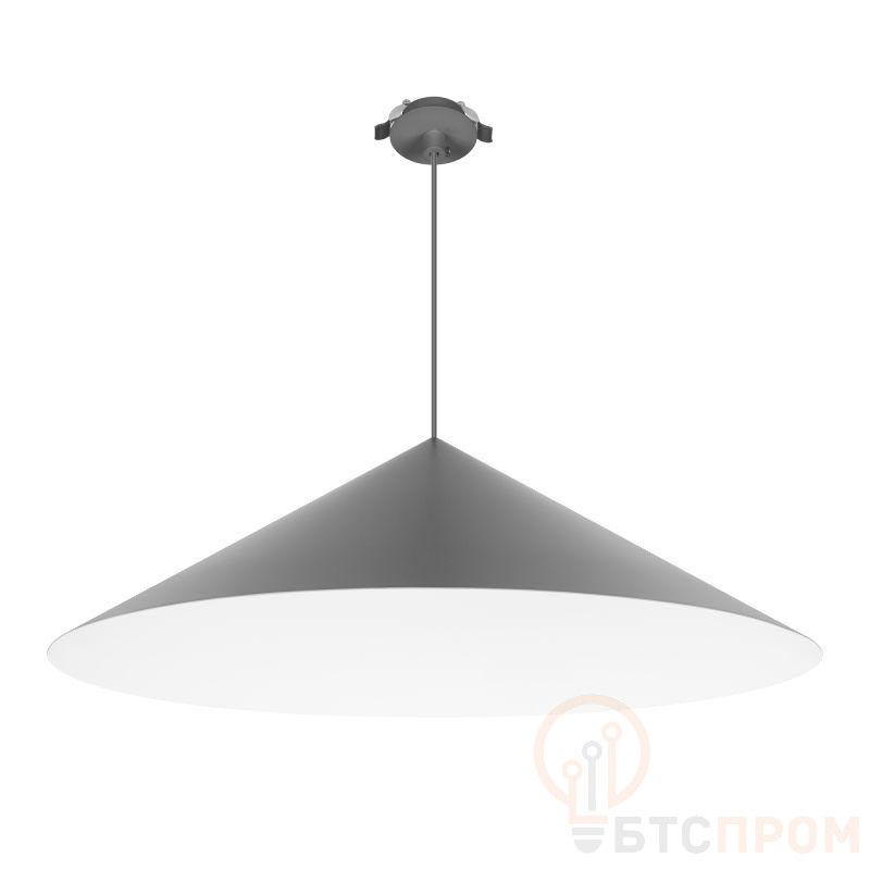 Подвесной светильник. Мощность 14 Вт, св. поток 1200 лм, 90 лм/Вт, теплый 2700K, CRI>97, угол 36°, напряжение питания 230 В. Черный корпус из алюминия в форме конуса с белой внутренней поверхностью, линза-рассеиватель из PMMA, степень защиты IP20. Размер: диаметр 750 мм, высота 230 мм. Монтаж подвесной, длина подвеса 2000 мм, регулируемая. В комплекте 2 вида чаш. Габариты встраиваемой чаши: O 80x23 мм. Габариты накладной чаши O140x55 мм. Драйвер 27-42 В, 350 мА, пульсация <1%. Управление по TRIAC.