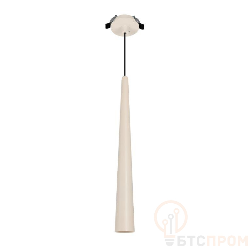 Подвесной светильник. Мощность 5 Вт, св. поток 400 лм, световая эффективность 70 лм/Вт, теплый 2700 K, CRI>92, угол 36°, напряжение питания 230 В. Кремовый конусообразный вытянутый корпус из алюминия, линза из PMMA, степень защиты IP20. Размер: диаметр 57 мм, высота 400 мм. Монтаж подвесной, длина подвеса 2000 мм, регулируемая. В комплекте 2 вида чаш. Габариты встраиваемой чаши: O 80x41 мм. Габариты накладной чаши O80x60 мм. Драйвер 2,8-12В, 500 мА, пульсация <1%.