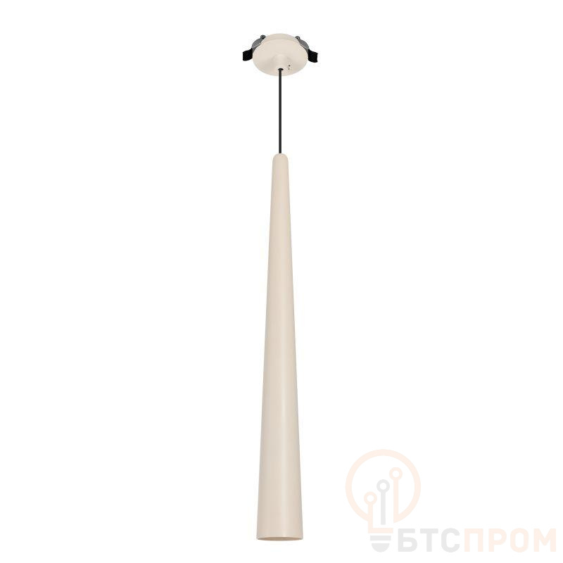 Подвесной светильник. Мощность 5 Вт, св. поток 400 лм, 70 лм/Вт, теплый 3000K, CRI>92, угол 36°, напряжение питания 230 В. Кремовый конусообразный вытянутый корпус из алюминия, линза из PMMA, степень защиты IP20. Размер: диаметр 76 мм, высота 670 мм. Монтаж подвесной, длина подвеса 2000 мм, регулируемая. В комплекте 2 вида чаш. Габариты встраиваемой чаши: O 80x41 мм. Габариты накладной чаши O80x60 мм. Драйвер 2,8-12В, 500 мА, пульсация <1%.