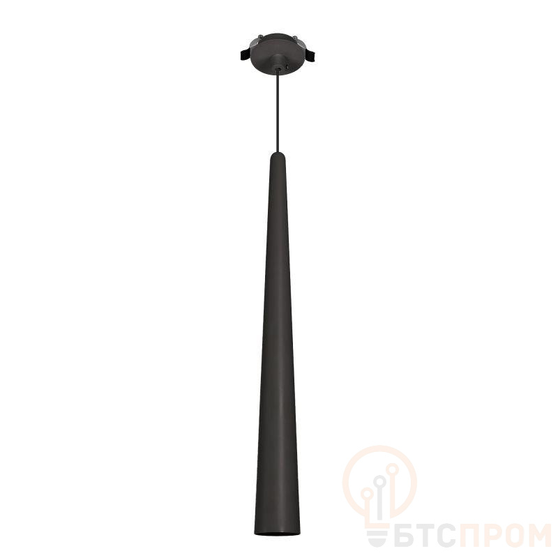 Подвесной светильник. Мощность 5 Вт, св. поток 400 лм, 70 лм/Вт, теплый 3000K, CRI>92, угол 36°, напряжение питания 230 В. Чёрный конусообразный вытянутый корпус из алюминия, линза из PMMA, степень защиты IP20. Размер: диаметр 76 мм, высота 670 мм. Монтаж подвесной, длина подвеса 2000 мм, регулируемая. В комплекте 2 вида чаш. Габариты встраиваемой чаши: O 80x41 мм. Габариты накладной чаши O80x60 мм. Драйвер 2,8-12В, 500 мА, пульсация <1%.