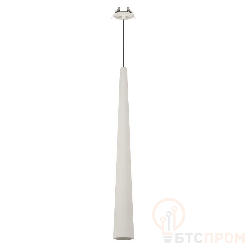Подвесной светильник. Мощность 5 Вт, св. поток 400 лм, 70 лм/Вт, теплый 3000K, CRI>92, угол 36°, напряжение питания 230 В. Светло - серый конусообразный вытянутый корпус из алюминия, линза из PMMA, степень защиты IP20. Размер: диаметр 76 мм, высота 670мм. Монтаж подвесной, длина подвеса 2000 мм, регулируемая. В комплекте 2 вида чаш. Габариты встраиваемой чаши: O 80x41 мм. Габариты накладной чаши O80x60 мм. Драйвер 2,8-12В, 500 мА, пульсация <1%.