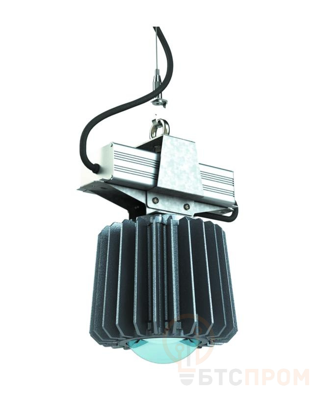 Промышленный, тип "High Bay LED", COB Seul Semicondactor, стеклянная линза 120°. Конструкция - корпус - радиатор из литого алюминия, окрашен порошковой краской, оптическая система - стеклянные линзы с различной диаграммой направленности (ксс): 60 гр, 90 гр и 120 гр. Крепление на монтажную поверхность с помощью элементов подвеса. Области применения - производственные помещения (промышленность, сельское хозяйство), складские помещения, ангары, спортивные крытые сооружения, помещения с повышенными требованиями по защите от влаги и пыли, прочие помещения с высокими потолками.