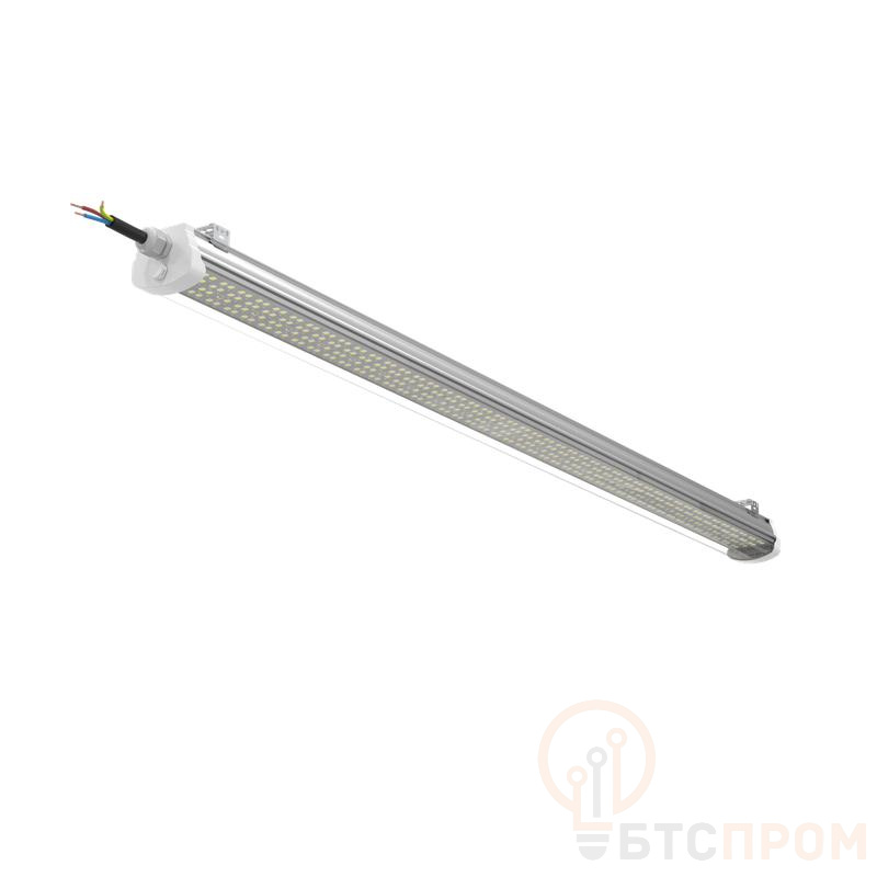 Корпус светильника выполнен из долговечного ДСП, а степень защиты IP66 гарантирует полную защиту от пыли и мощных струй воды. Это делает его идеальным для использования в условиях повышенной влажности и запыленности: на производственных цехах, складах, в автомойках, сельскохозяйственных объектах, а также на улице под навесами. Габаритные размеры прибора — 1200x74x60 мм — позволяют эффективно освещать значительные площади.