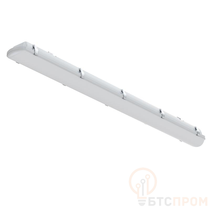 Корпус устройства выполнен из белого пластика и имеет степень защиты IP65, что гарантирует полную защиту от пыли и струй воды. Это делает светильник идеальным для использования на производствах, в цехах, складах, автомойках, гаражах, а также в подъездах и других общественных зонах с повышенными требованиями к чистоте и влагостойкости. Его компактные размеры (1260x150x100 мм) и долгий срок службы позволяют легко интегрировать его в любую систему освещения, обеспечивая экономию энергии и минимальные затраты на обслуживание.