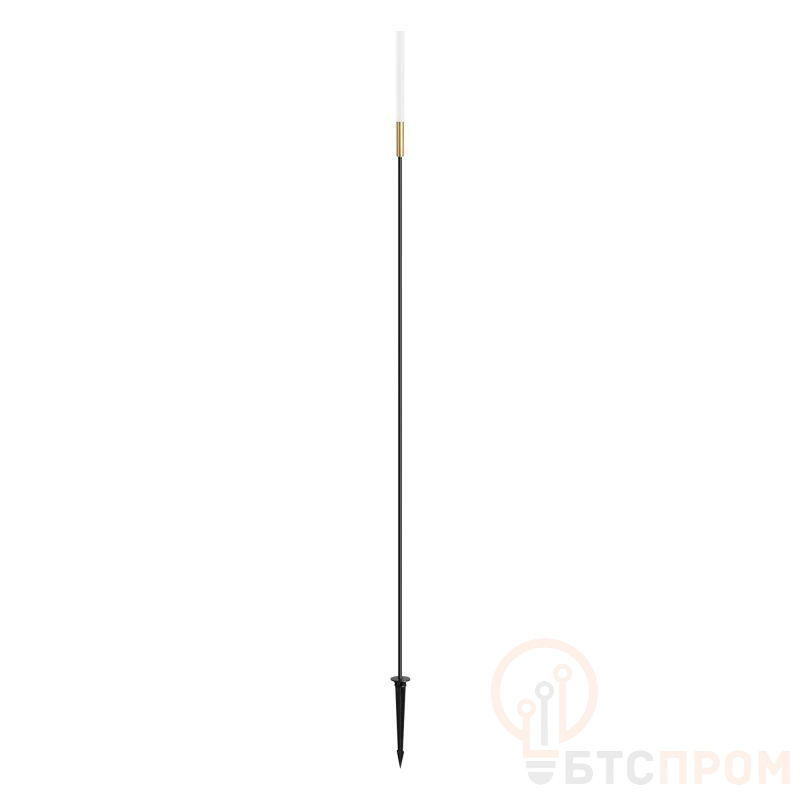 Уличный декоративный светодиодный светильник. Мощность 0.5 Вт, св. поток 15 лм, 105 лм/Вт, теплый 3000 K, CRI>80, угол излучения 160°, напряжение питания 24 В. Черный корпус из алюминия, прозрачный матовый рассеиватель из стекла. Степень защиты IP65. Размер: диаметр 15 мм, высота 1075 мм, высота углубления 160 мм. Монтаж в грунт с помощью основания пика (входит в комплект поставки). Драйвер приобретается отдельно.
