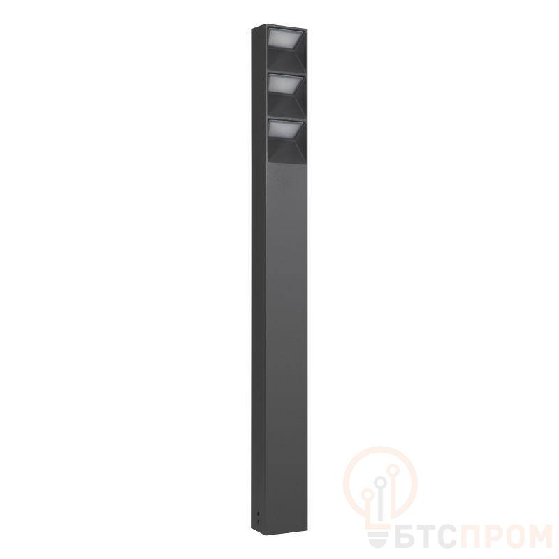 Уличный светодиодный светильник для освещения дорожек. Мощность 12 Вт. Цвет теплый белый 3000К, световой поток 629 лм, угол 92°. Влагозащищенный корпус IP65 - темно-серый алюминий, экран из поликарбоната. Питание 100-240 В, мощность 12 Вт. Размеры светильника ДхШхВ: 85x61x900 мм. Монтаж накладной, комплект крепежа поставляется со светильником.