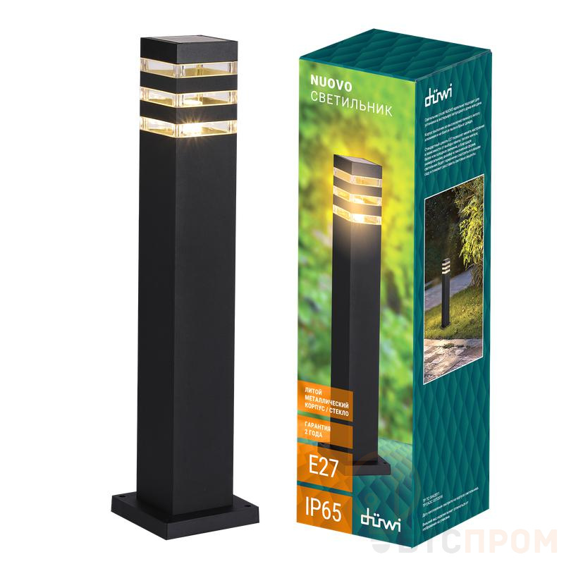 Светильник NUOVO Е27 IP65 90х90х610мм алюм./стекло столб садово-парков. черн. Duwi 24397 7 фото в каталоге от BTSprom.by