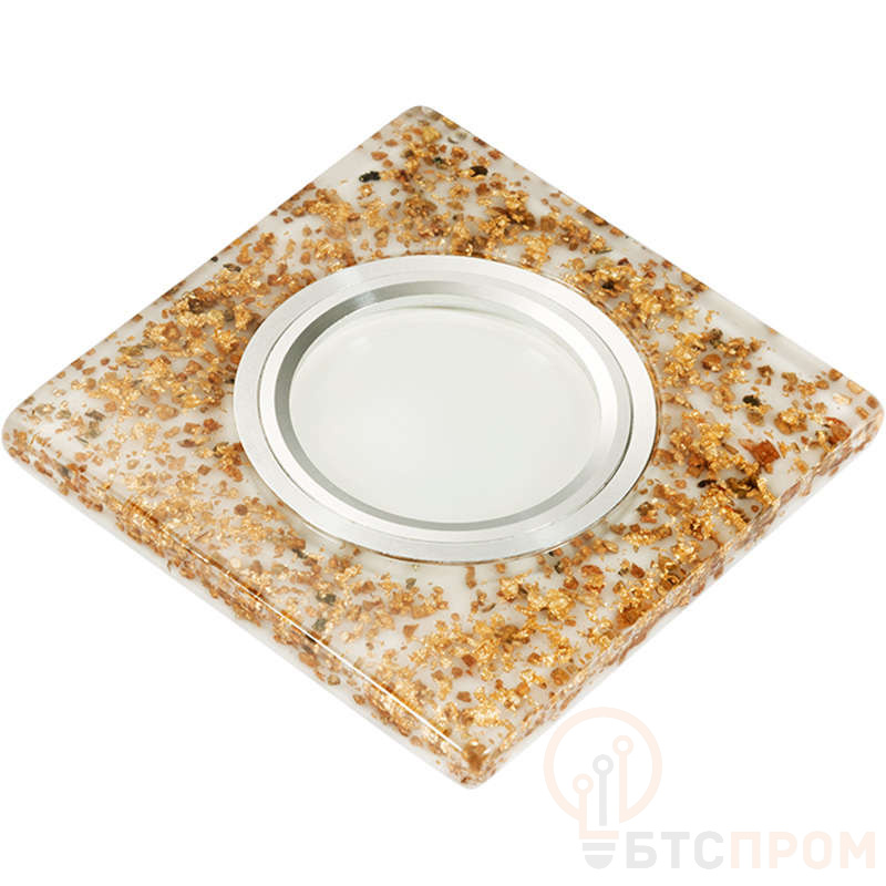 Светильник декоративный Luciole DLS-L109 GU5.3 CHROME/WHITE GU5.3 встраив. квадрат доп. светодиод. подсветка 3Вт без лампы основание метал. хром отделка полимерн. покрытие бел. с частицами цвета кофе Fametto UL-00000360