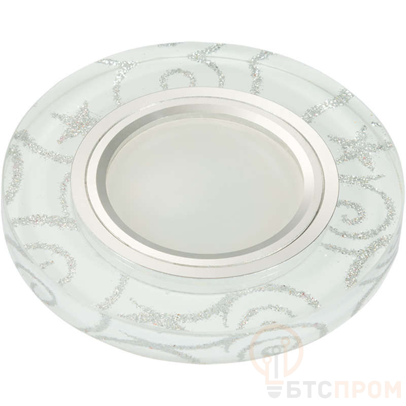 Светильник декоративный Luciole DLS-L202 GU5.3 CHROME/WHITE GU5.3 встраив. доп. светодиод. подсветка 3Вт без лампы основание метал. хром отделка стекло с серебр. на бел. фоне Fametto UL-00000377