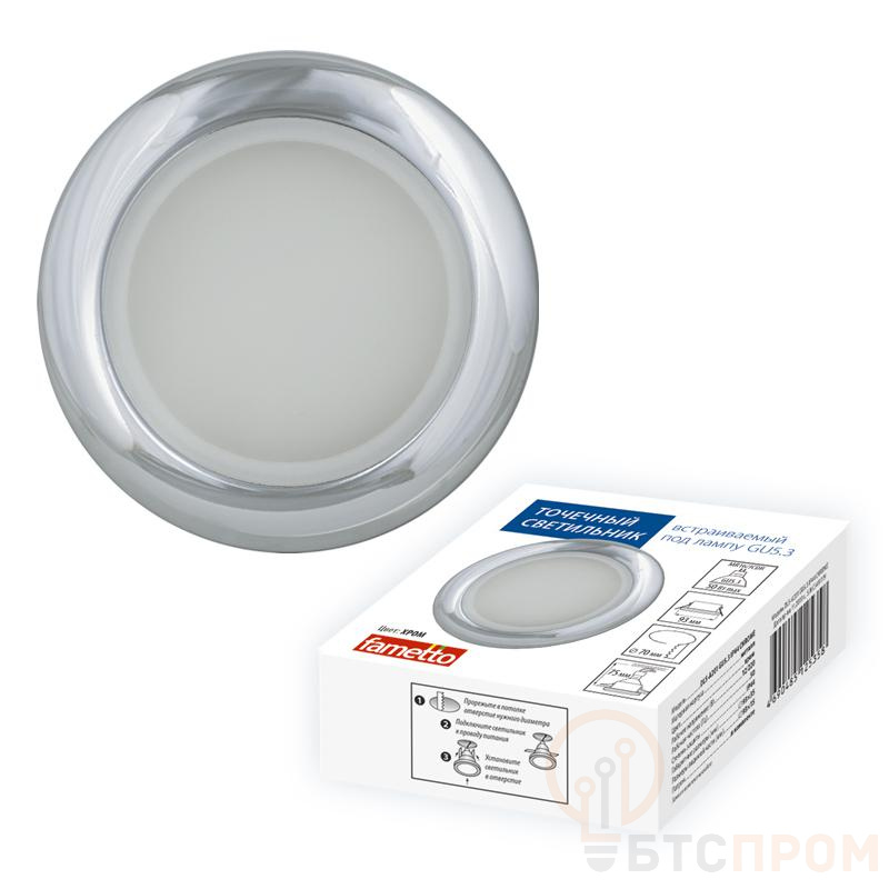 Светильник декоративный встраиваемый DLS-A201 GU5.3 IP44 CHROME серия Arno без лампы цоколь GU5.3 метал. хром. Fametto UL-00006041