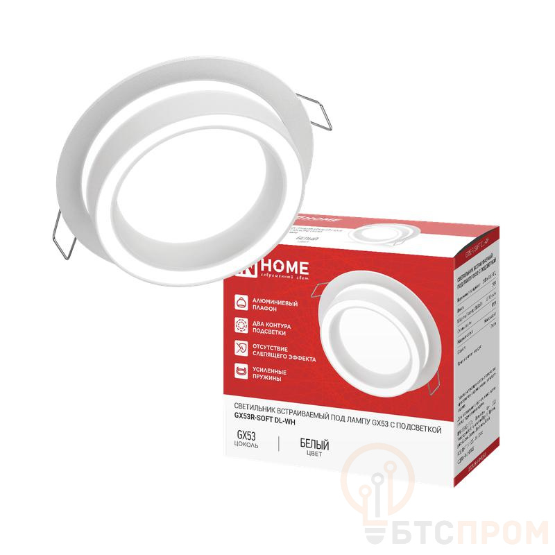 Светильник GX53R-SOFT DL-WH — это современное встраиваемое решение для организации основного или декоративного освещения. Корпус круглой формы диаметром 105 мм и высотой 45 мм выполнен из качественного белого пластика, что обеспечивает гармоничное встраивание в подвесные потолки (типа «Армстронг»), гипсокартонные конструкции, мебельные ниши и шкафы-купе.