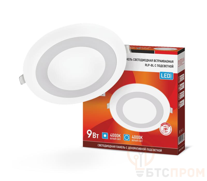 Светильник светодиодный RLP-BL 9Вт 4000К IP20 540лм 230В 145мм круглый встраив. с подсветкой панель бел. IN HOME 4690612032962