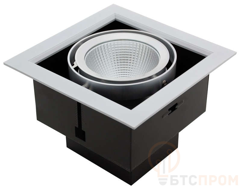 УСТАНОВКА Встраивается в потолки типа 'Армстронг' или в подшивные потолки из гипсокартона. КОНСТРУКЦИЯ Металлический корпус, окрашенный порошковой краской (стандартное исполнение - цвет 'серый металлик'/'черный'). Карданная система регулировки оптического модуля.Блок питания встроен в корпус светильника. ОПТИЧЕСКАЯ ЧАСТЬ Рефлектор, прозрачный рассеиватель из ударопрочного оптического поликарбоната.