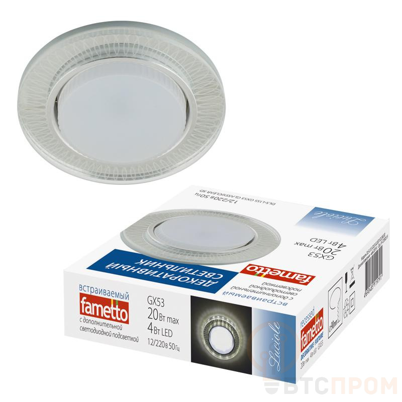 Светильник точечный декоративный DLS-L155 GX53 Glassy/Clear 3D GU5.3 встраив. доп. светодиод. подсветка 4Вт без лампы Fametto UL-00005320