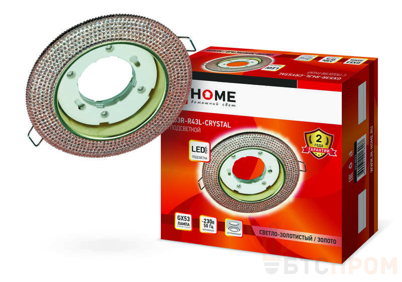 Светильник точечный GX53R-crystal R43L GX53 IP20 230В встраив. с подсветкой свет. зол./зол. IN HOME 4690612016207