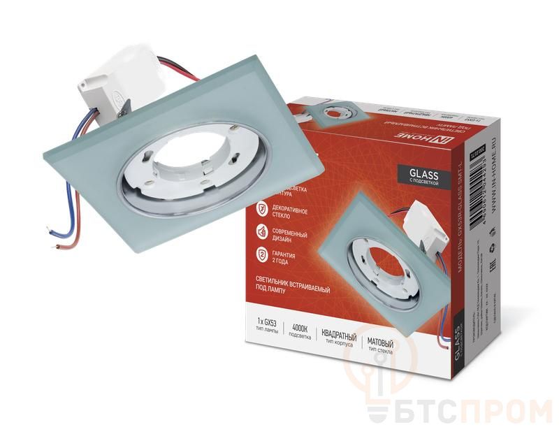 Светильник GX53R-glass SMT-L КВАДРАТ встраив. с подсветкой 4К под лампу GX53 матов. IN HOME 4690612044293