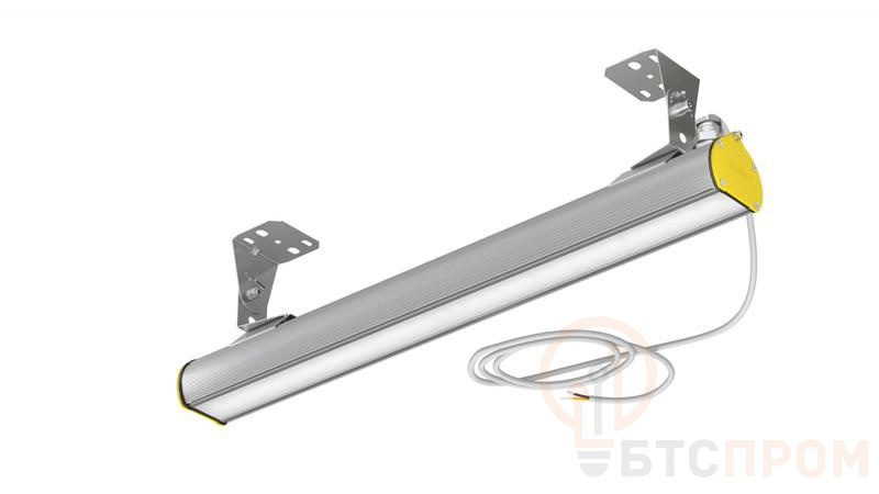 Промышленные взрывозащищенные линейные светодиодные светильники выполненные в алюминиевых корпусах с высокой степенью защиты от воздействия окружающей среды IP65. Светильники выпускаются в модификации с постоянно присоединенным кабелем. Для обеспечения искробезопасности применены специальные Ех клеммники с постоянно прижатыми контактами, оптическая часть светильника полностью залита светотехническим прозрачным компаундом, источник питания изолирован при помощи компаунда. Светильники оснащаются ударопрочными качественными рассеивателями, устойчивыми к УФ излучению, с установленным съемником статического электричества. Продуманная конструкция теплоотвода гарантирует сохранение заявленных характеристик и безотказную работу светильника. Грамотная конструкция крепежного узла позволяет осуществлять подвесной (при помощи тросов или цепей) или накладной монтаж (при помощи кронштейна с регулировкой угла наклона). Регулировка угла наклона возможна в диапазоне от 0 до 90°. Светильники могут соединяться в линию при помощи торцевого переходника. Цвет корпуса – серый. Материал корпуса – алюминий. Материал рассеивателя – оптический поликарбонат. Тросы и цепи в комплекте не поставляются. Маркировка взрывозащиты: 1Ех e mb IIC T4 Gb X Ex tb mb IIIC T90C Db X X  Расшифровка маркировки - 1Ех взрывобезопасное оборудование; - e повышенная безопасность вида «e»; - tb защита оболочкой и ограничением температуры; - mb герметизация компаундом; - IIC группа электрооборудования для газовых сред, эталонные газы ацителен и водород; - IIIC группа пыли, проводящая; - Т4, Т90С температурный класс; - Gb, Db уровень взрывозащиты по пылевым и газовым средам; - X специальные условия безопасного применения.
