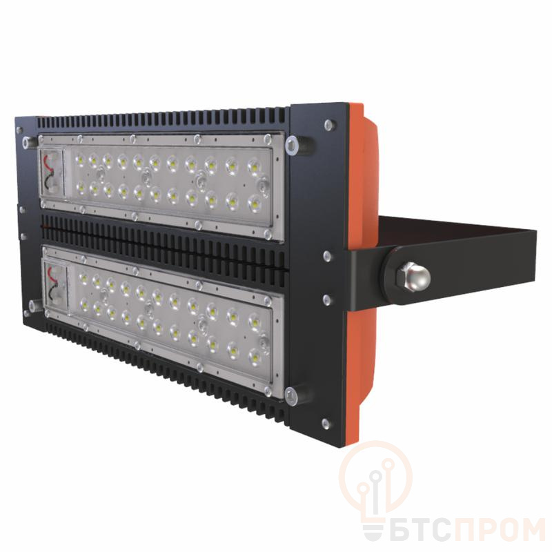 Мощность прибора составляет 70 Вт, а световой поток — 11005 лм, что обеспечивает высокую энергоэффективность и отличную освещенность. Нейтральная цветовая температура 5000К создает комфортное и четкое белое свечение. Кривая силы света (КСС) типа «Ш» (широкая) позволяет равномерно заливать светом большие площади. Светильник работает от безопасного напряжения 36 В и оснащен удобным креплением на лиру в белом корпусе.