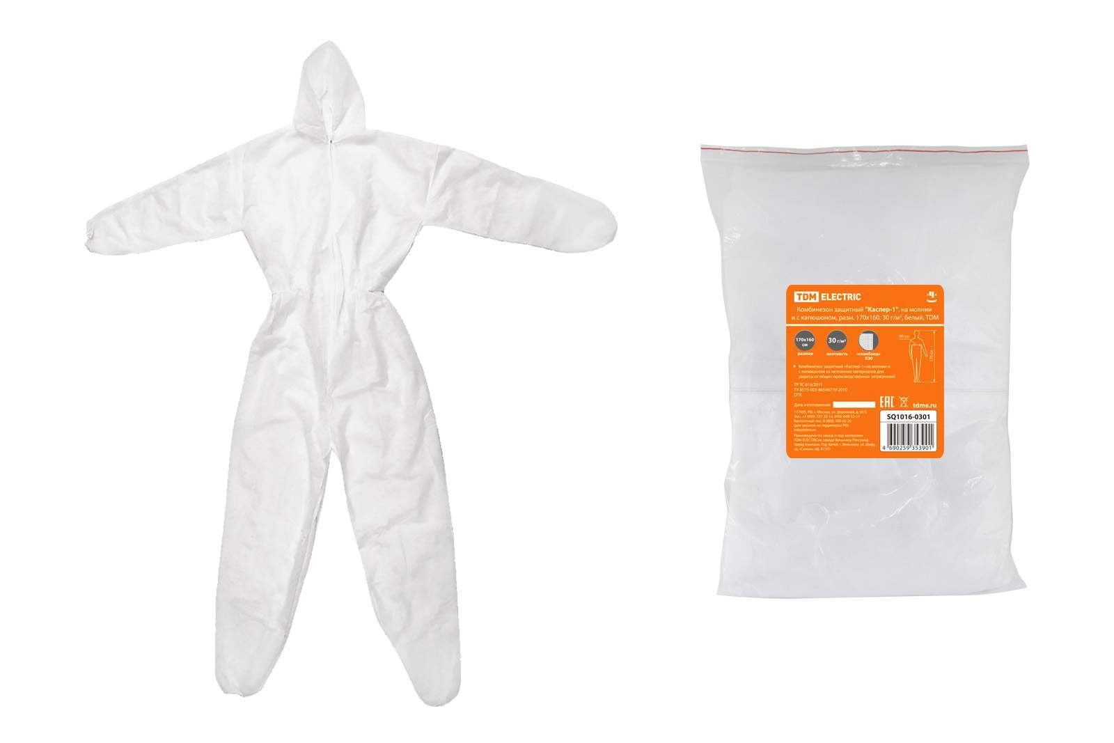 –Комбинезон защитный "Каспер-1", на молнии и с капюшоном, разм. 170х160, 30 г/м2, белый, TDM