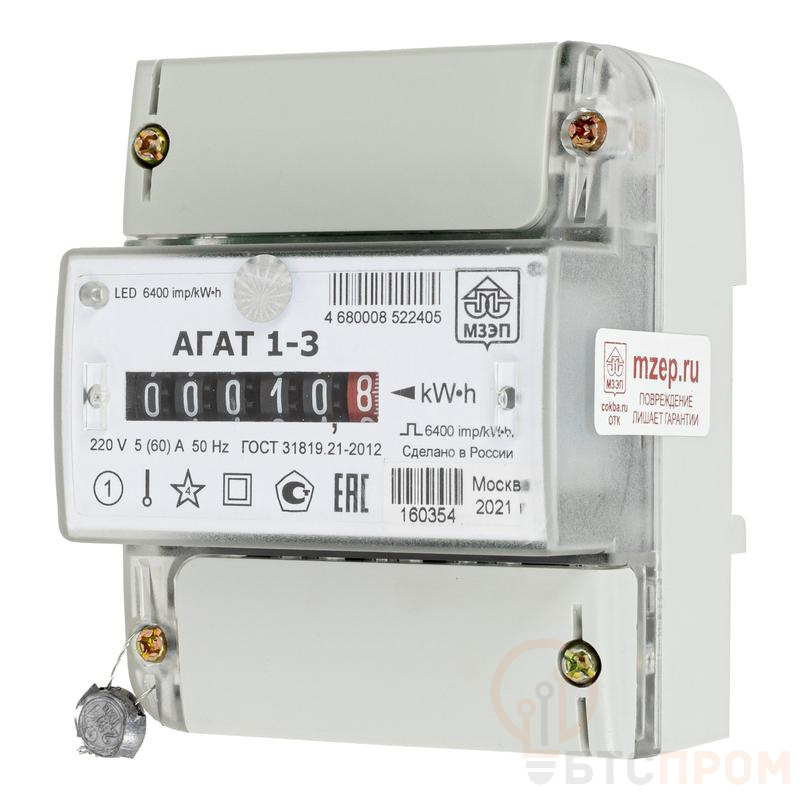 Счетчик АГАТ 1-3 1ф однотариф. МЗЭП ЕКБ468008522405 фото в каталоге от BTSprom.by