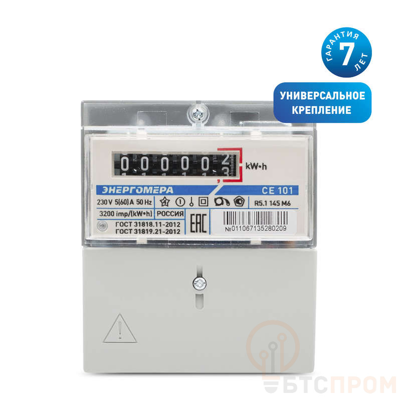 Счетчик CE101 R5.1 145 M6 1ф 5-60А класс точн. 1.0 1 тариф. универс. крепл. мех. ОУ 230В Энергомера 101001003011067