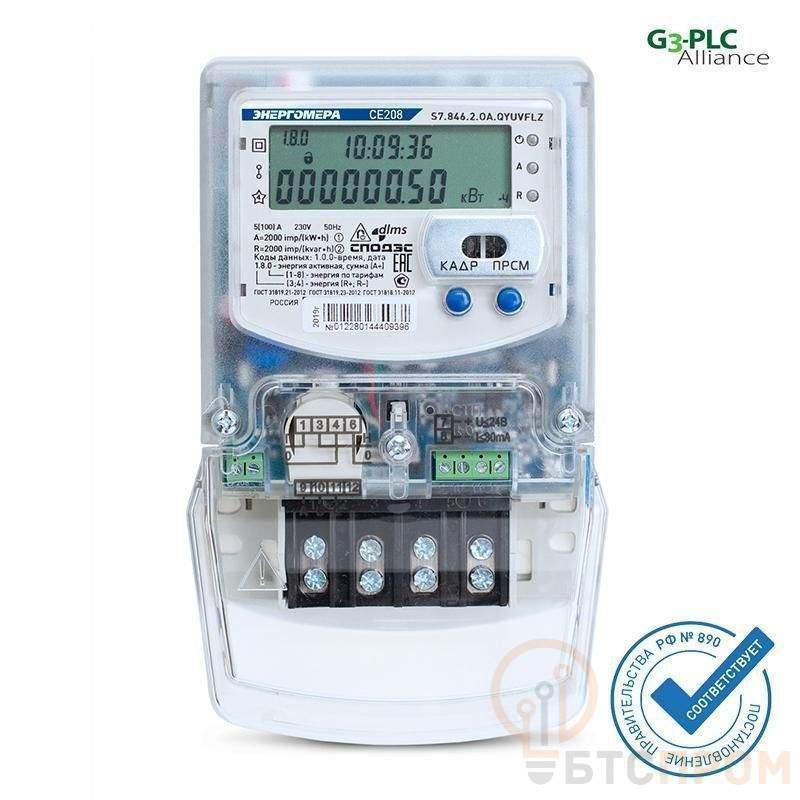 Счетчик CE208 S7.846.2.OA.QYUVFLZ SPDS 1ф 5-100А класс точн. 1.0/2.0 многотариф. Моск. вр. Энергомера 101002008012280