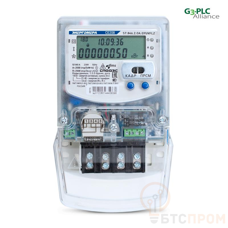 Счетчик CE208 S7.846.2.OR1.QYUVFLZ LR01 SPDS 1ф 5-100А класс точн. 1.0/2.0 многотариф. Энергомера 101002008012722