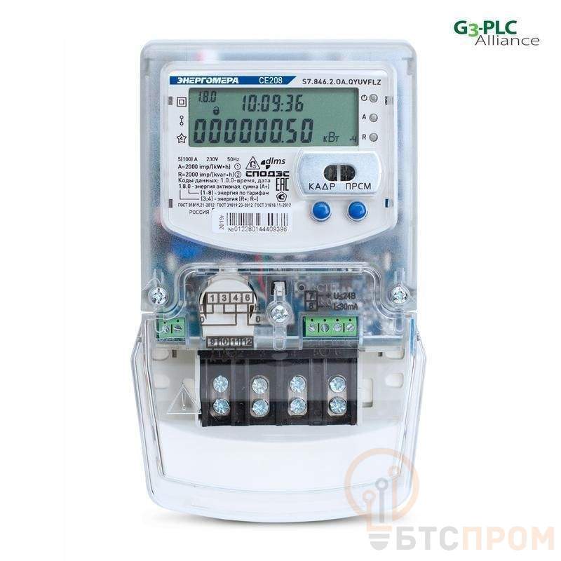 Счетчик CE208 S7.846.2.OR1.QYUVFLZ LR01 SPDS 1ф 5-100А класс точн. 1.0/2.0 многотариф. Энергомера 101002008012637