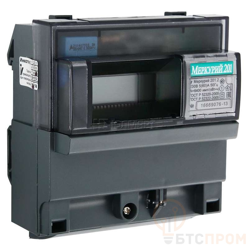 Счетчик Меркурий 201.2 1ф 5-60А класс точн. 1.0 1 тариф. 220В Инкотекс 00000032416 фото в каталоге от BTSprom.by