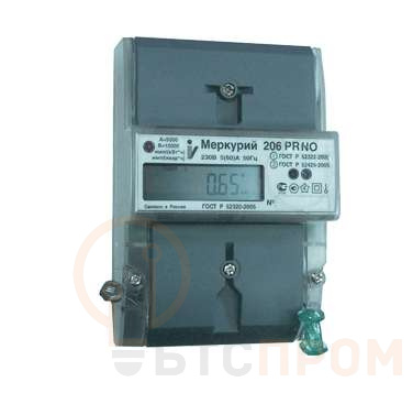 Счетчик Меркурий 206 PRNO 1ф 5-60А класс точн. 1.0/2.0 многотариф. оптопорт RS-485 на DIN-рейку ЖКИ Моск. вр. Инкотекс М0000052520