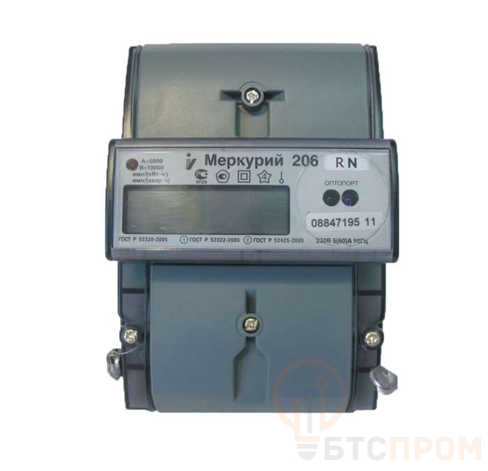 Счетчик Меркурий 206 RN 1ф 5-60А класс точн. 1.0/2.0 многотариф. оптопорт RS-485 ЖКИ Екат. вр. Инкотекс М0000051787
