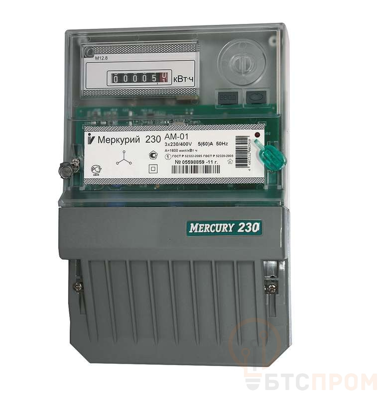 Счетчик Меркурий 230 AM-01 — это современный трехфазный прибор учета активной электроэнергии, предназначенный для работы в трехпроводных и четырехпроводных сетях переменного тока. Устройство обладает высоким классом точности 1.0, что обеспечивает надежный и достоверный контроль потребления энергии. Номинальный ток составляет 5-60 А, что делает счетчик универсальным для применения в различных объектах.